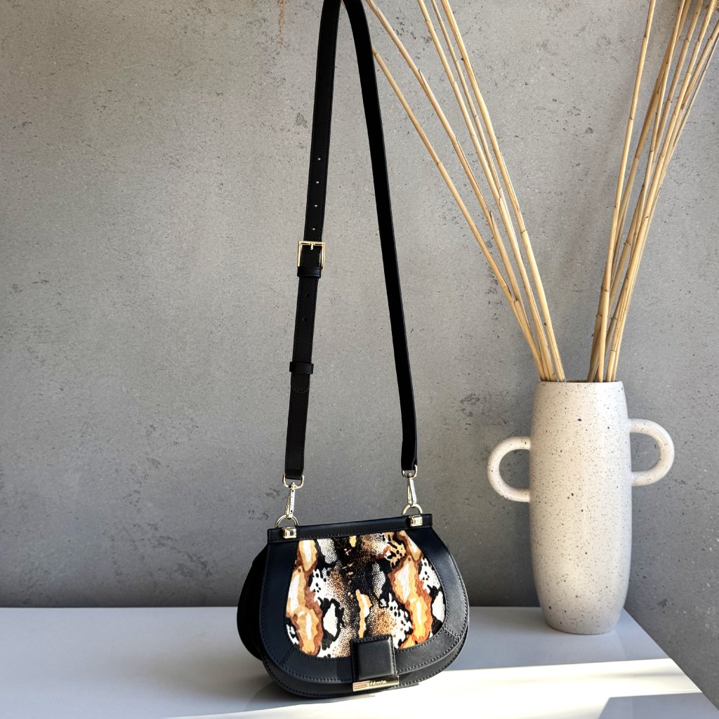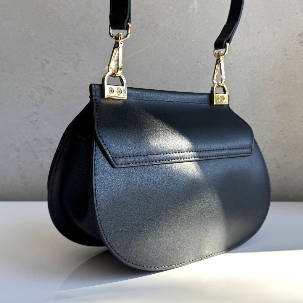 Čierna crossbody kabelka s výrazným detailom na prednej časti. Ramienko cez plece má nastaviteľnú dľžku. Dopraj si šik kúsok do svojho šatníka.