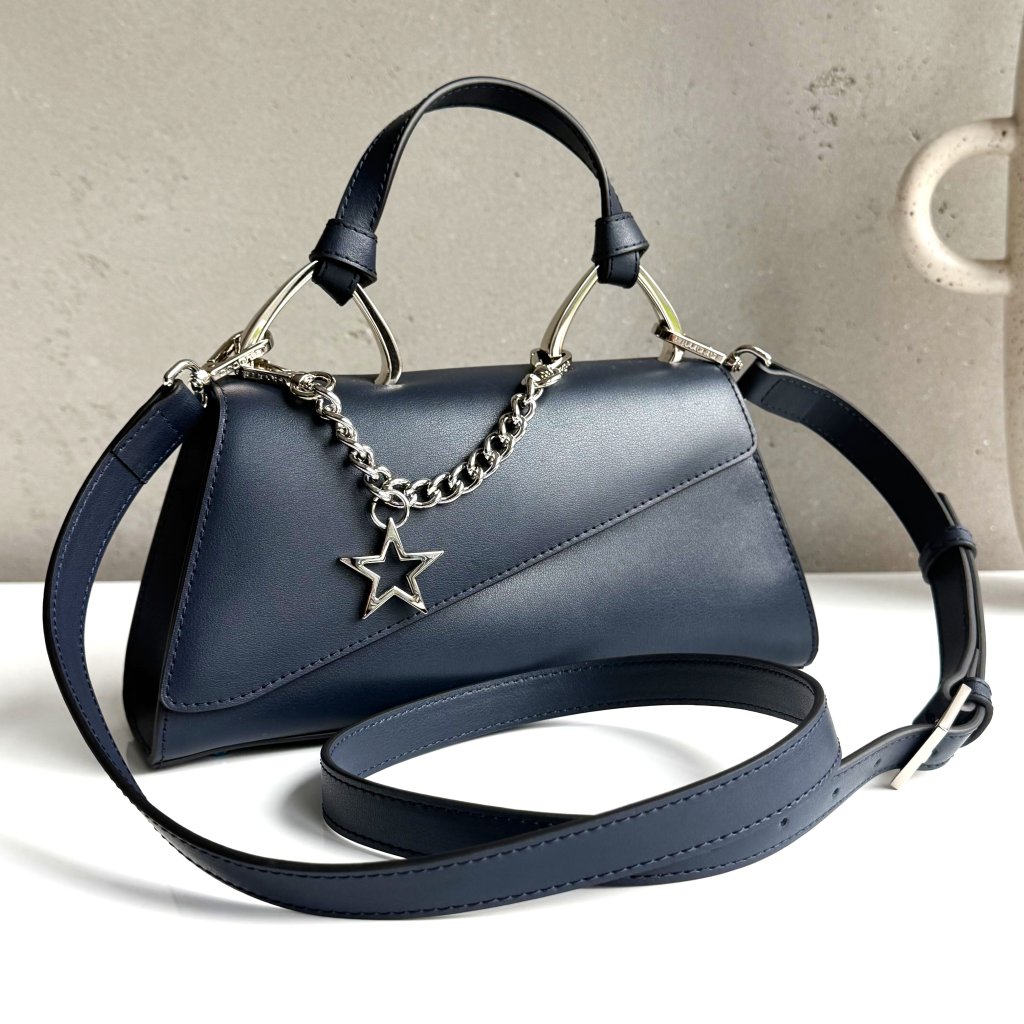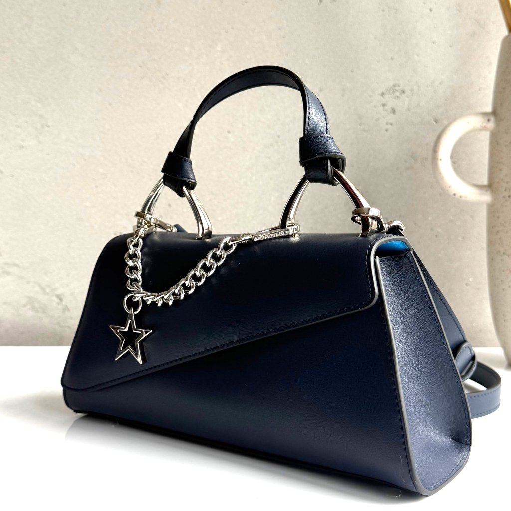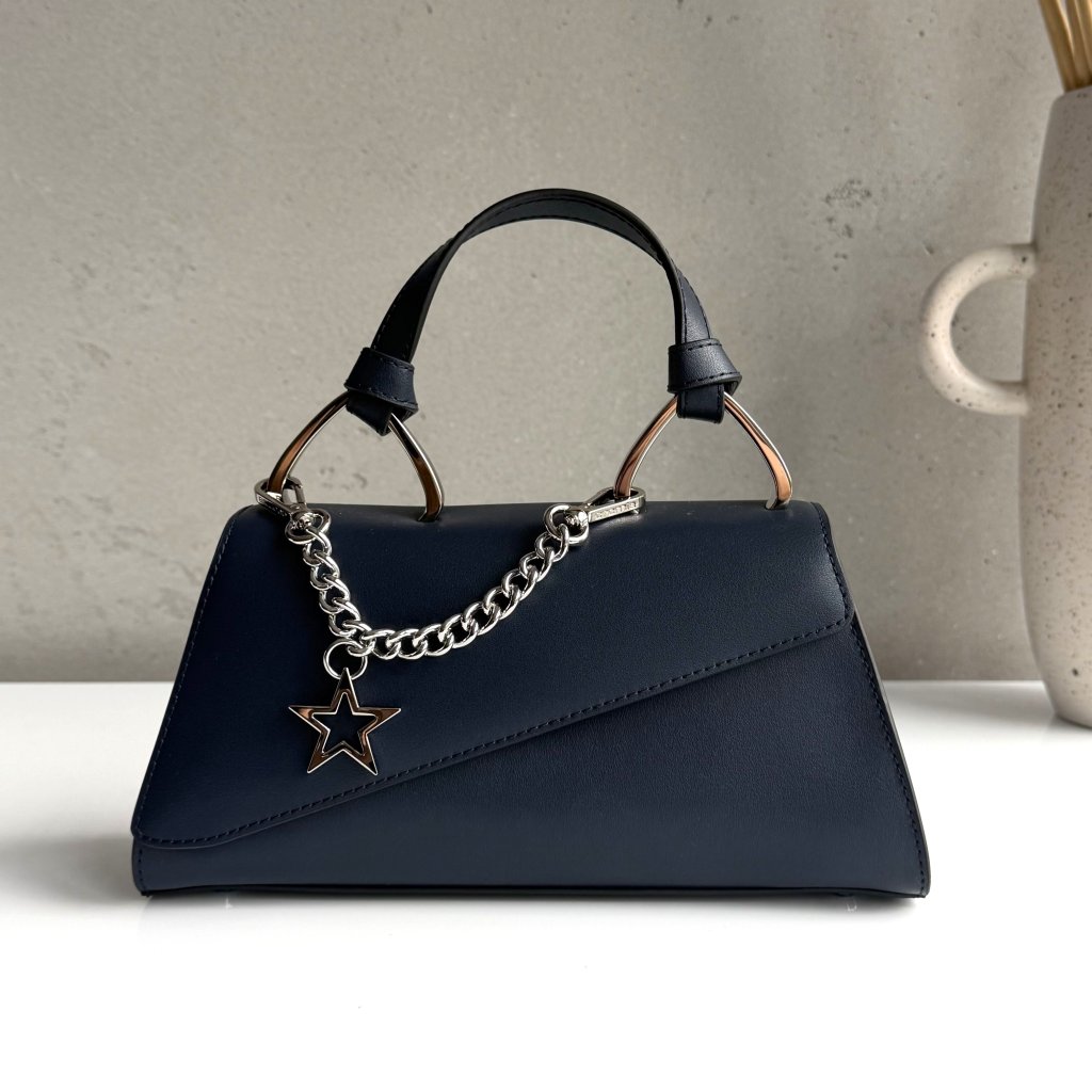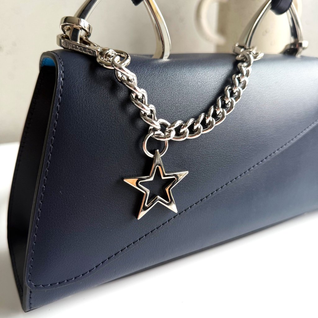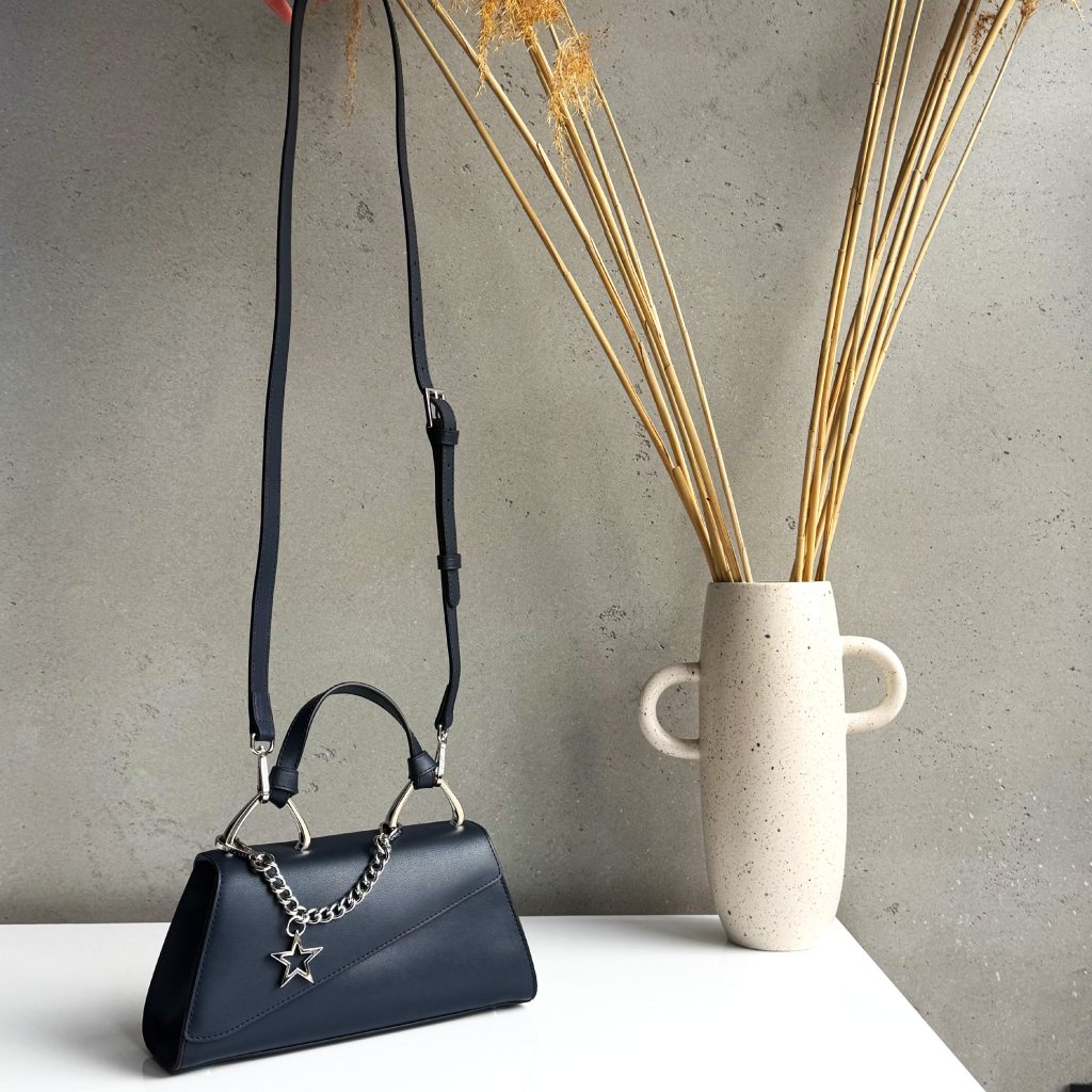 Kabelka do ruky aj na plece/crossbody. Štýlová a netradičná. To vystihuje kabelku Petit Eva. Malá kabelka, ktorá zaujme svojim netradičným tvarom a ozdobnou odnímateľnou retiazkou. Chceš si dopriať niečo výnimočné do svojho šatníka? Potom siahni po Petit Star kabelke a neoľutuješ. Asymetrické zatváranie kabelky pôsobí luxusne. Ženská a rafinovaná kabelka pre tvoj dokonalý outfit.